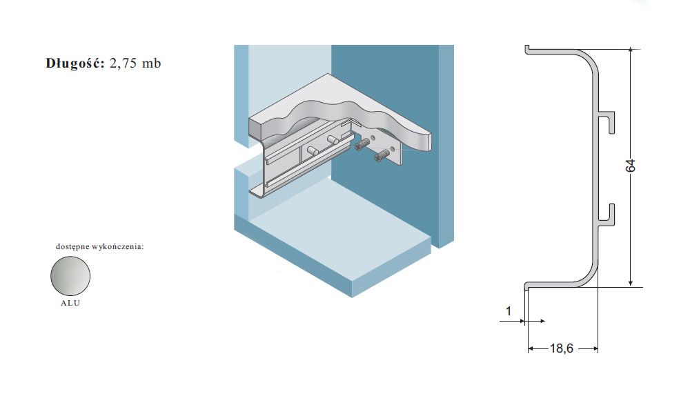 Listwa korytkowa środkowa. Eliminuje konieczność stosowania tradycyjnych uchwytów.