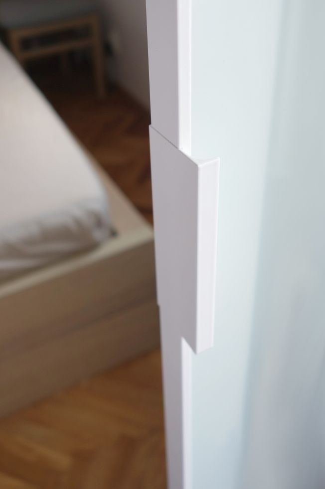 Na zdjęciu poniżej: uchwyt zamontowany w ramce F2 (tutaj zarówno uchwyt jak i ramka są lakierowane na biały połysk).